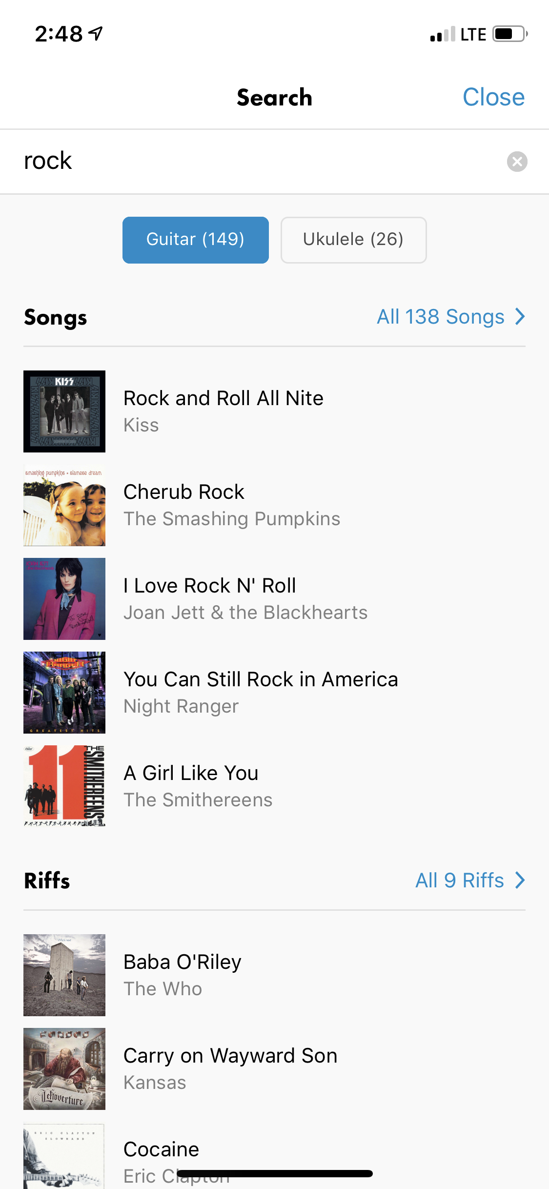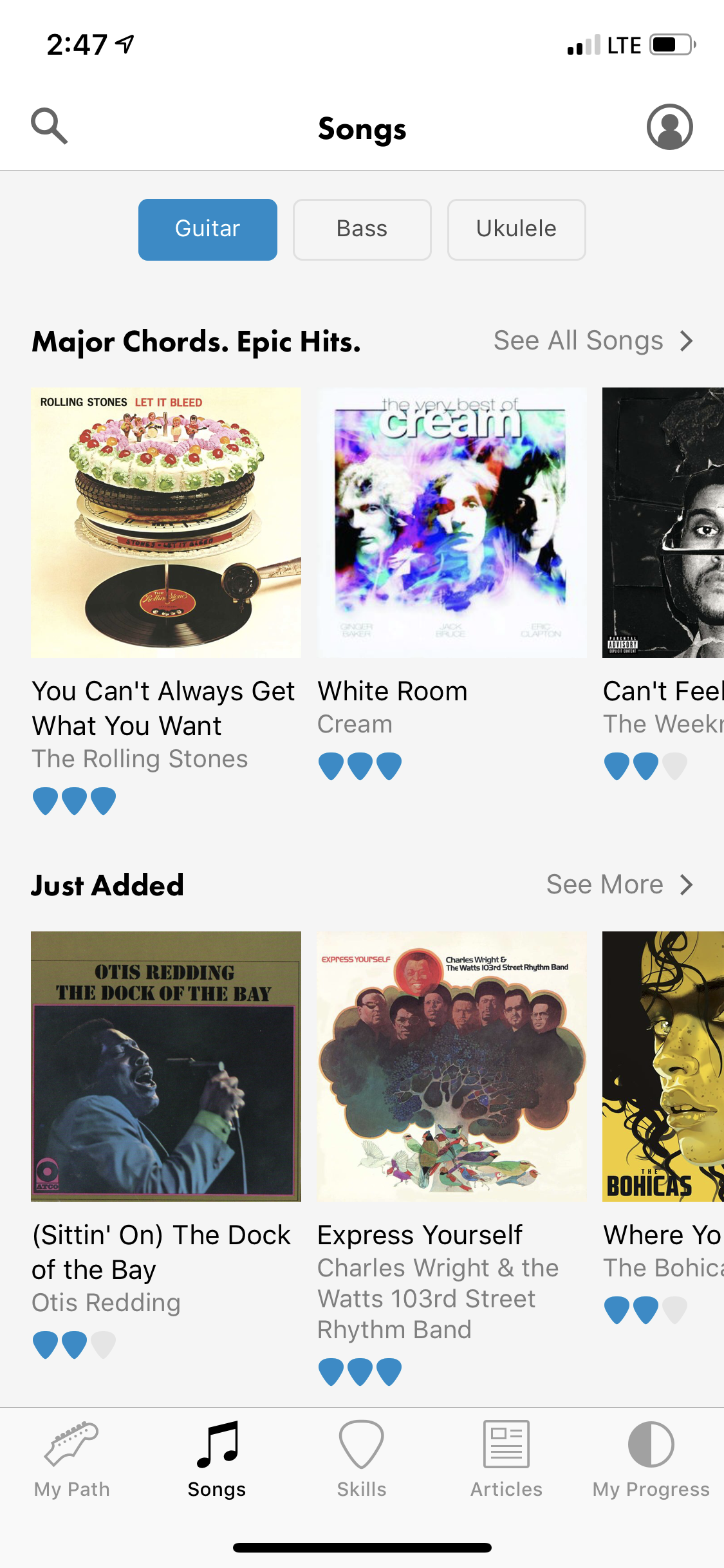 Released new features such as: in-app purchases, iPad product launch, Android product launch, ukulele content, tablature feature, GDPR support, practice reminders, search, bass content, additional product SKUs, Facebook Connect, fullscreen tablature, Intercom integration, dynamic SKUs, Practice Mode: interactive tablature, Home screen